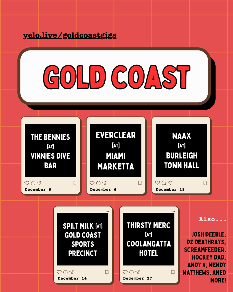 - WAAX @ Burleigh Town Hall, Dec 18: You’ll love the experimental sounds of this iconic Sunshine Coast act.