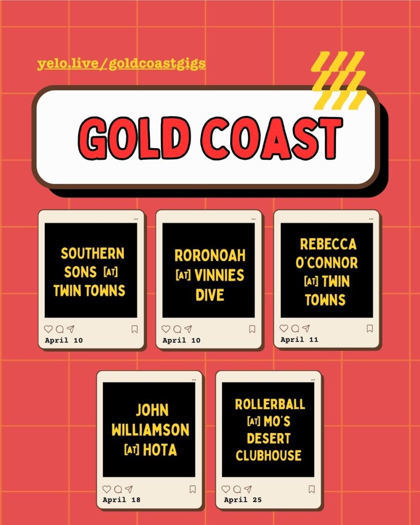 April brings a solid run of live music across the Gold Coast and southern border, from bigger showroom acts and touring names to local favourites in nightlife rooms and creative venues. These are the Gold Coast gigs worth planning around this month.