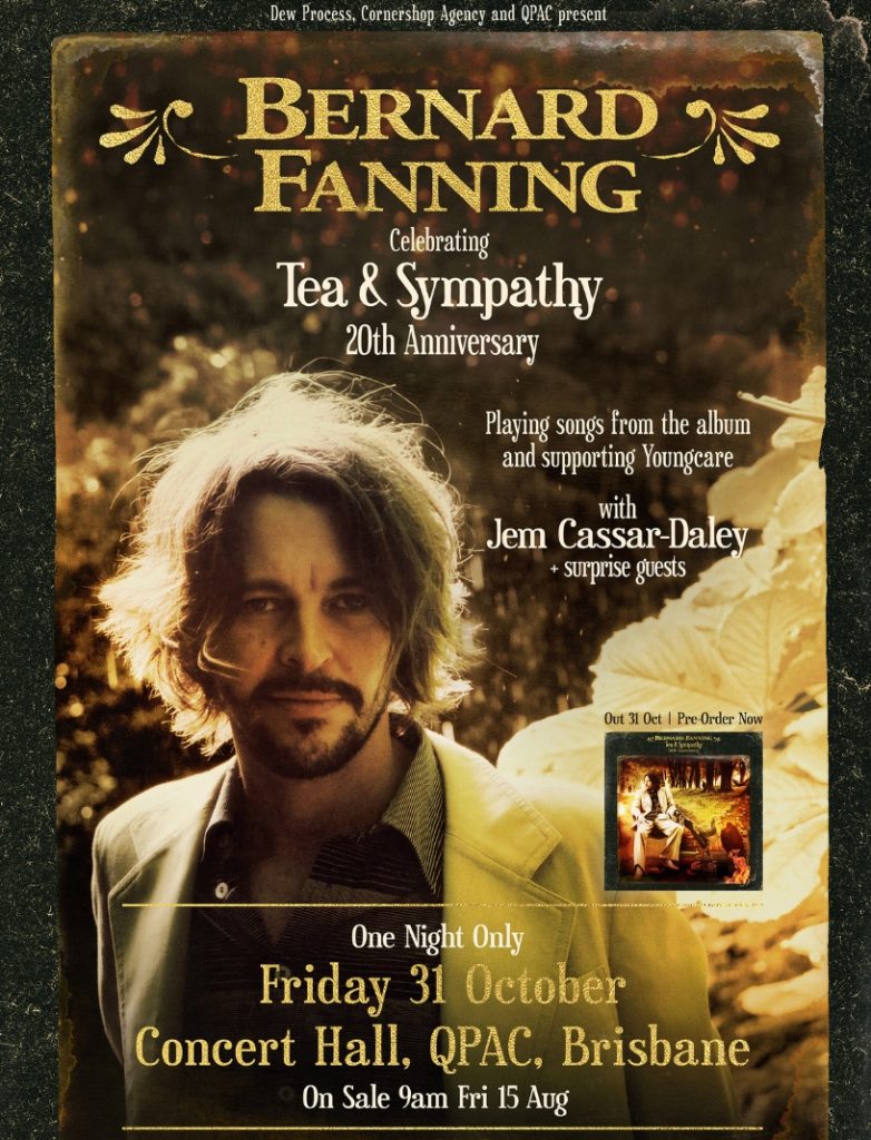 One of Australia’s most celebrated singer-songwriters Bernard Fanning will celebrate 20 years since the release of his critically acclaimed debut solo album, Tea & Sympathy.