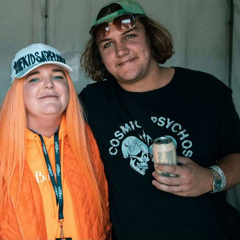 Coolum rockstar Pricey has also jumped on the Tones and I train, sharing a throwback photo of himself and Tones from Laneway Festival in 2020, when he was playing his huuuuuge band The Chats.