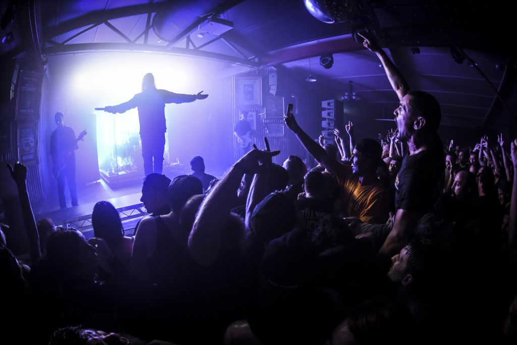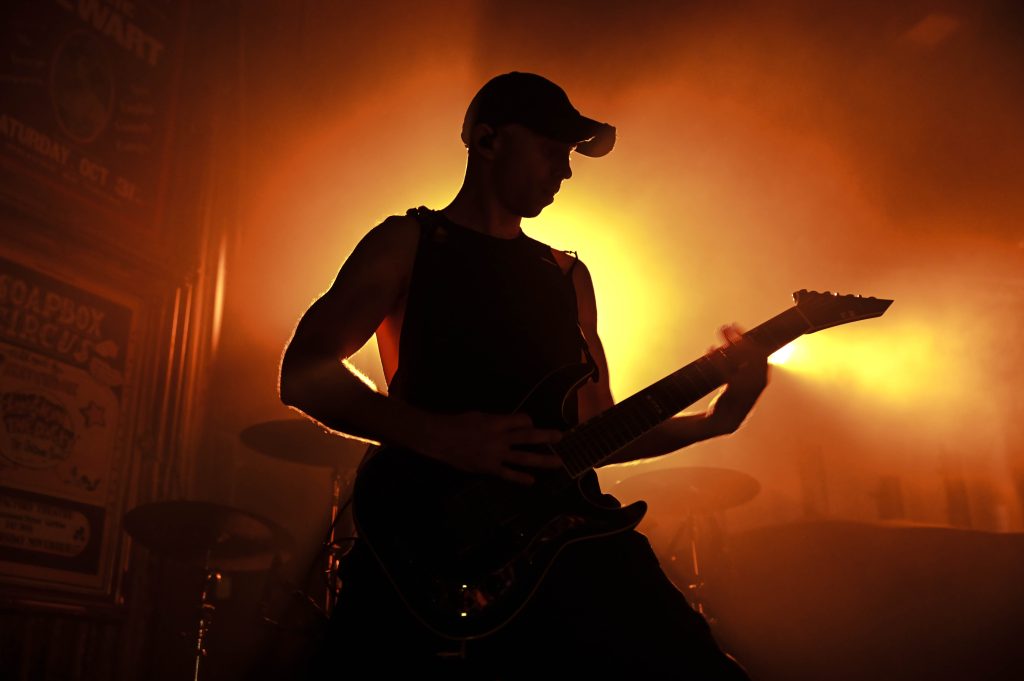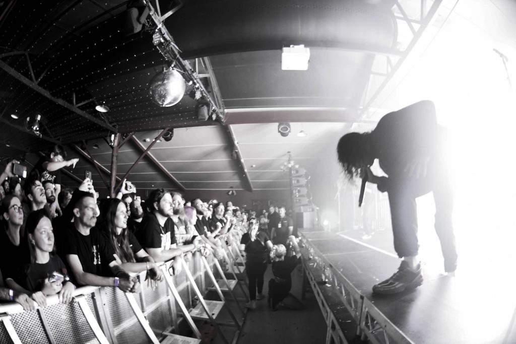In Hearts Wake were hugely popular from the outset, delivering high-energy moments backed by a dramatic lighting show that constantly reshaped the room. The mosh surged early and rarely settled, shifting between circle pits and chaotic bursts that matched every breakdown.