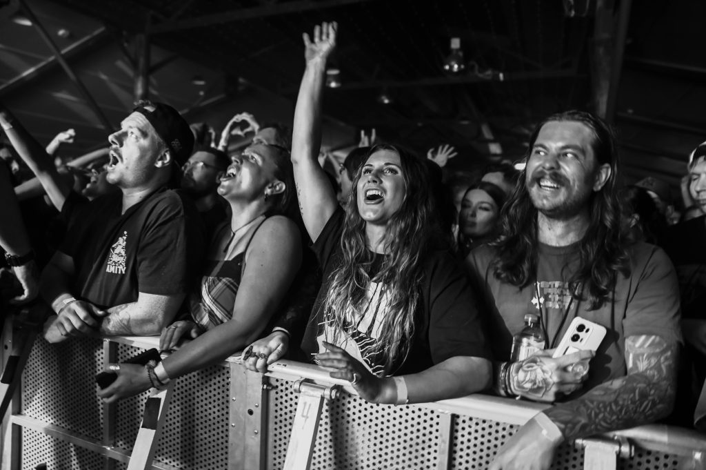 Then came Gympie’s own The Amity Affliction – as fun as ever and completely in their element, playing to a sold-out home crowd (did I mention getting the last car park at Aussie World?). To a room full of black-tee-toting scene veterans, their set delivered all the emotional peaks they’re known for, with crowd-wide vocals, heavy drops and heart-stinging sing-alongs.