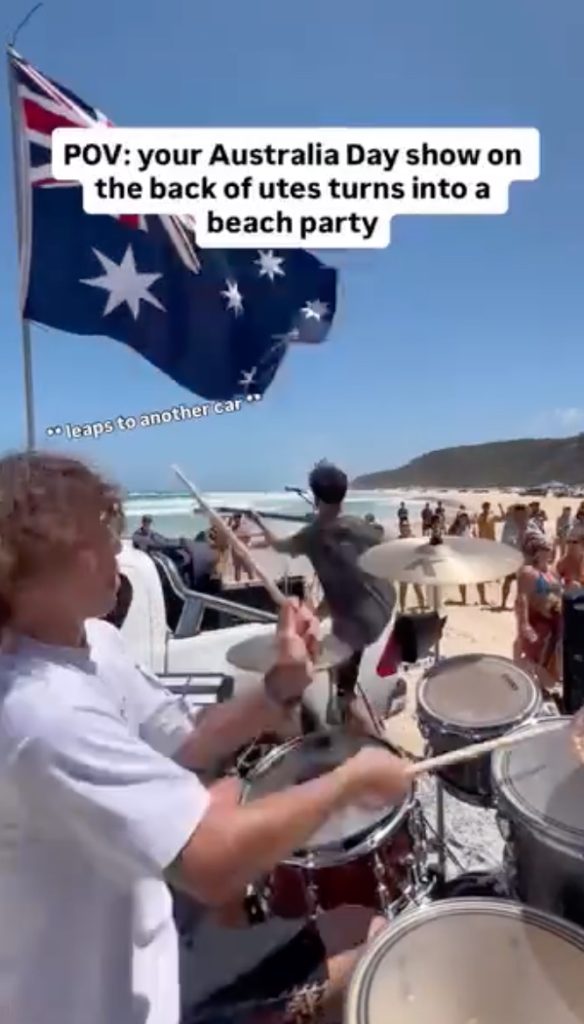 Pulling off a surprise beach gig was no small feat for the three teens who could barely fit their gear into their convoy of cars. But after a mate stepped in with a ute and trailer to help them haul their makeshift stage to the point, it was game on.